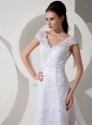 Customize Wedding Dress Column V-neck Beading Court Train Lace