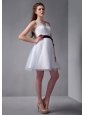 Home >  Bridesmaid Dresses >  Simple Bridesmaid Dresses > Customize White A-line V-neck Bow Bridesmaid Dress Mini-length Tulle and Taffeta
