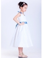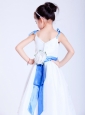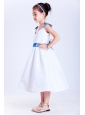 Home >  Flower Girl Dresses > Customize White and Blue A-line V-neck Bows Flower Girl Dress Tea-length Taffeta