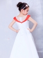 Home >  Flower Girl Dresses > Customize White and Red A-line Scoop Embroidery Flower Girl Dress Ankle-length Satin and Organza