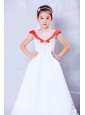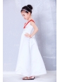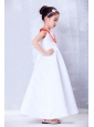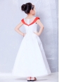 Customize White and Red A-line Scoop Embroidery Flower Girl Dress Ankle-length Satin and Organza