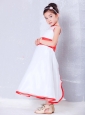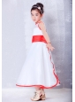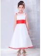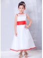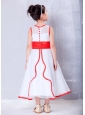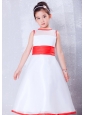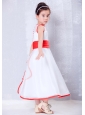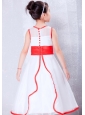 Customize White and Red A-line Scoop Flower Girl Dress Ankle-length Organza