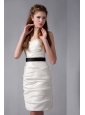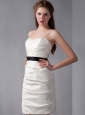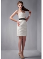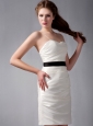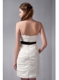 Customize White Column Strapless Ruch Bridesmaid Dress Mini-length Taffeta