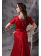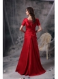 Customize Wine Red Mother Of The Bride Dress A-line Scoop Taffeta Beading and Ruch Brush Train