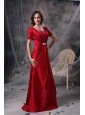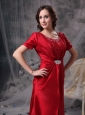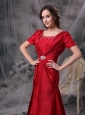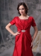 Are you still worrying about your dressing on the wedding? Perhaps you are still confused to choose a right one? This short sleeves pleated satin mother of groom and bride dress is your wonderful choice. Special design of scoop neckline, a shinning brooch which gather the bodice at the midsection will bring you a kind of mature and elegance feeling and show your high status. The red color makes you look quite noble and stunning. With this mother of bride dress, your beauty and elegance will leave a deep impression.