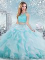 Home >  Quinceanera Dresses >  Luxurious Quinceanera Dresses > Customized Aqua Blue Ball Gowns Beading and Ruffles Ball Gown Prom Dress Clasp Handle Organza Sleeveless Floor Length