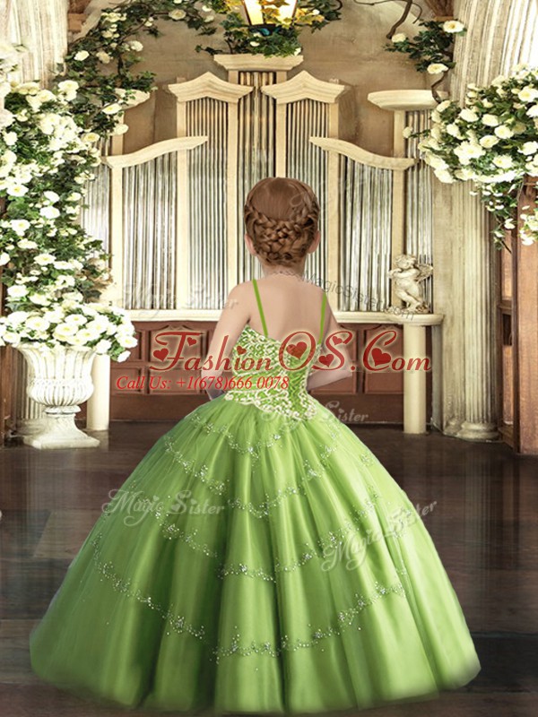 Customized Baby Blue Tulle Lace Up Straps Sleeveless Floor Length Pageant Gowns For Girls Beading