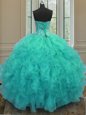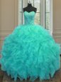 Customized Beading and Ruffles Quince Ball Gowns White And Red Lace Up Sleeveless Floor Length