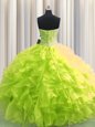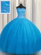 Customized Big Puffy Sleeveless Beading Lace Up Quince Ball Gowns