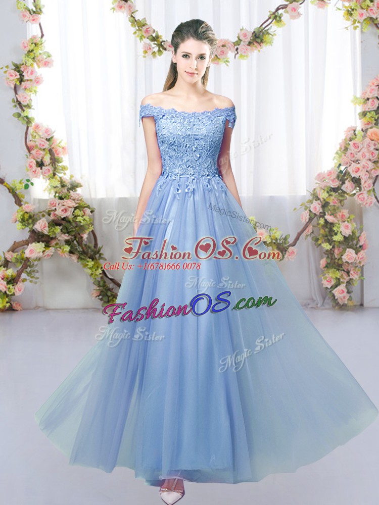Customized Blue Sleeveless Tulle Lace Up Quinceanera Court Dresses for Prom and Party and Wedding Party