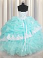 Customized Coral Red Ball Gowns Beading and Ruffles Quinceanera Gown Lace Up Organza Sleeveless Floor Length