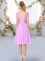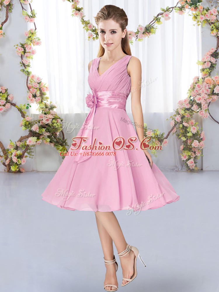 Customized Empire Bridesmaid Dress Rose Pink V-neck Chiffon Sleeveless Knee Length Lace Up