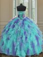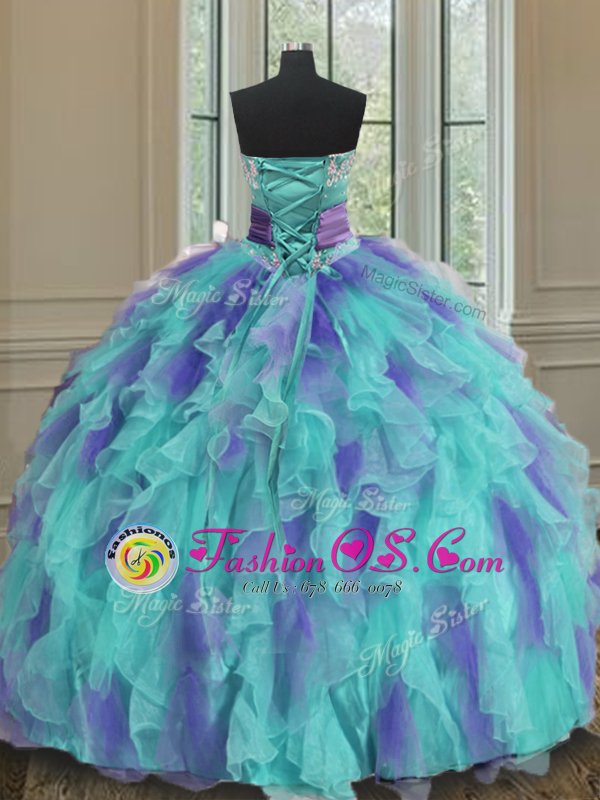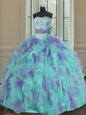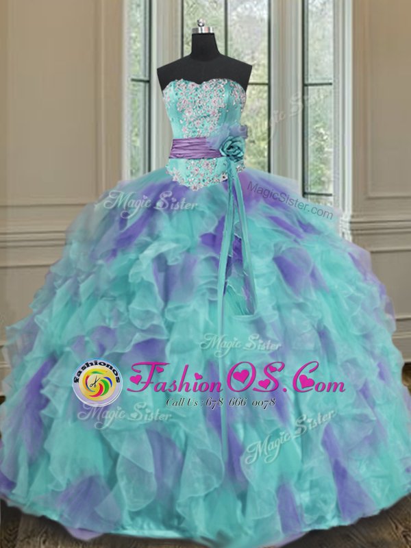 Customized Floor Length Lace Up Quinceanera Dress Multi-color and In for Military Ball and Sweet 16 and Quinceanera with Beading and Appliques and Ruffles and Sashes|ribbons and Hand Made Flower