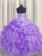Customized Floor Length Lavender Sweet 16 Quinceanera Dress Organza Sleeveless Beading and Ruffles