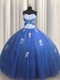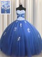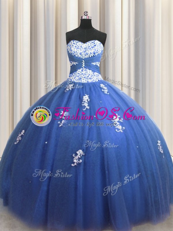 Customized Floor Length Royal Blue Quinceanera Gown Sweetheart Sleeveless Lace Up