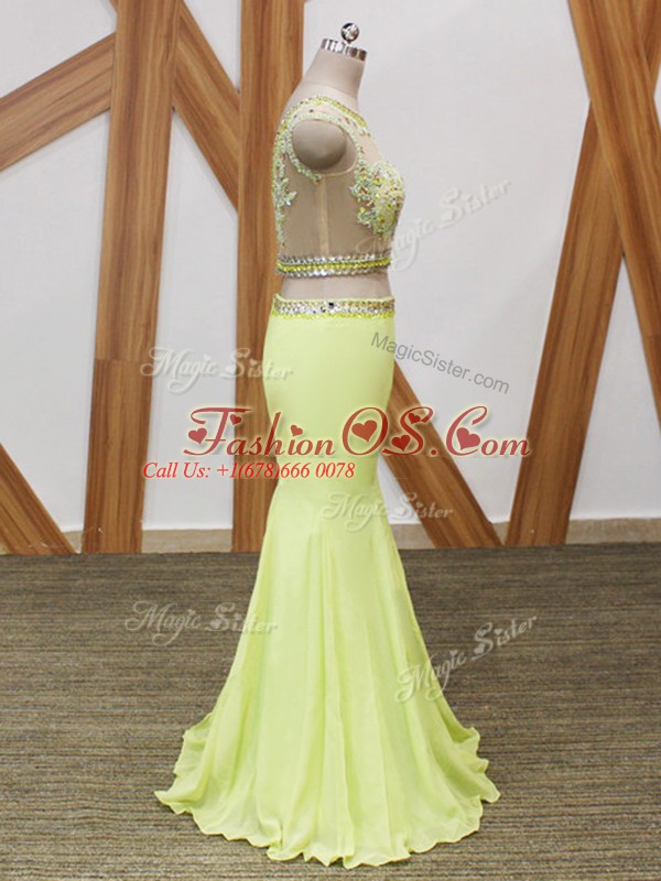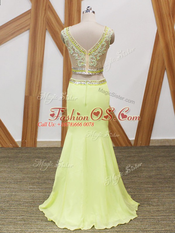 Customized Floor Length Yellow Green Party Dress for Toddlers Scoop Sleeveless Zipper