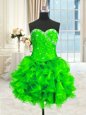 Customized Four Piece Organza Lace Up Sweetheart Sleeveless Floor Length Quinceanera Dress Beading and Ruffles and Ruching