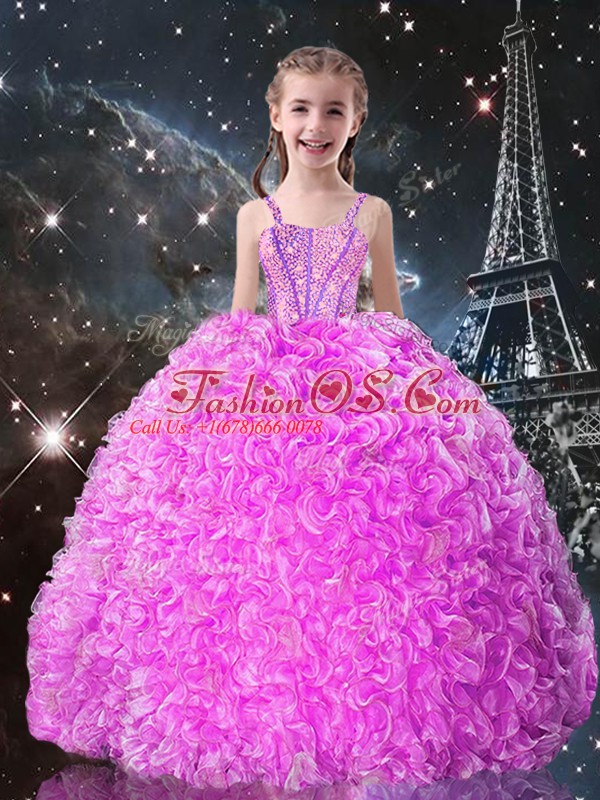 Home >  Special Occasion Dresses >  New Style Little Girl Pageant Dresses > Customized Fuchsia Ball Gowns Organza Straps Sleeveless Beading and Ruffles Floor Length Lace Up Girls Pageant Dresses