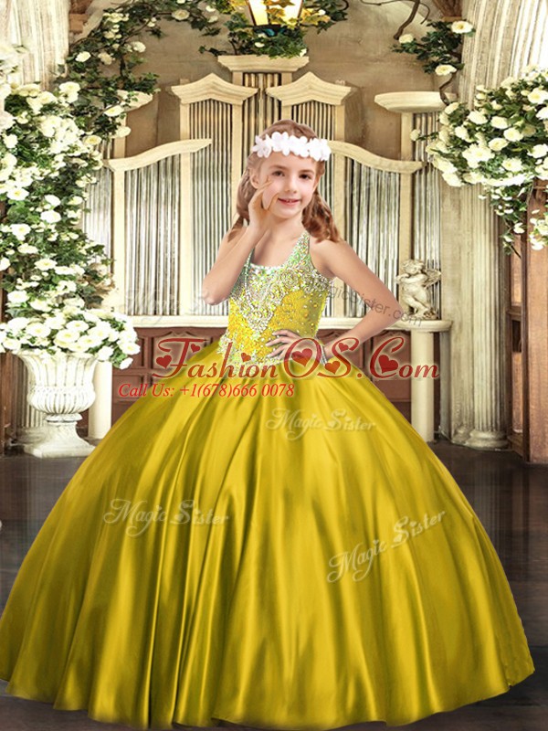 Customized Gold Sleeveless Floor Length Beading Lace Up Kids Formal Wear
