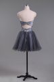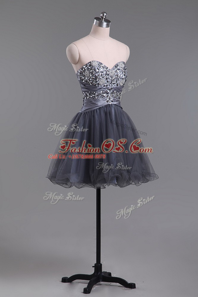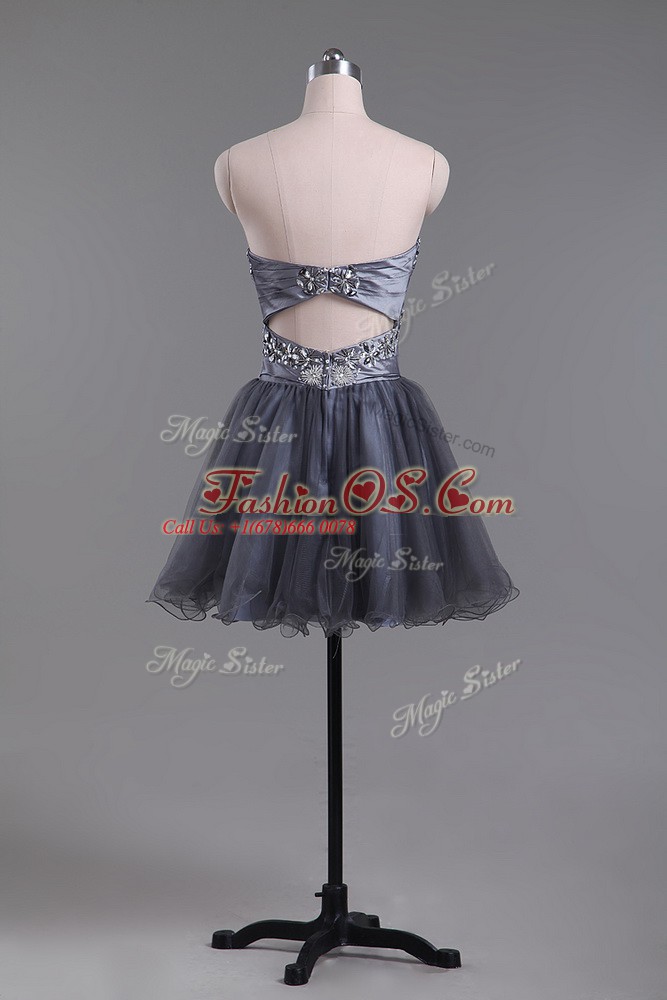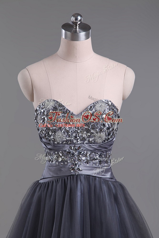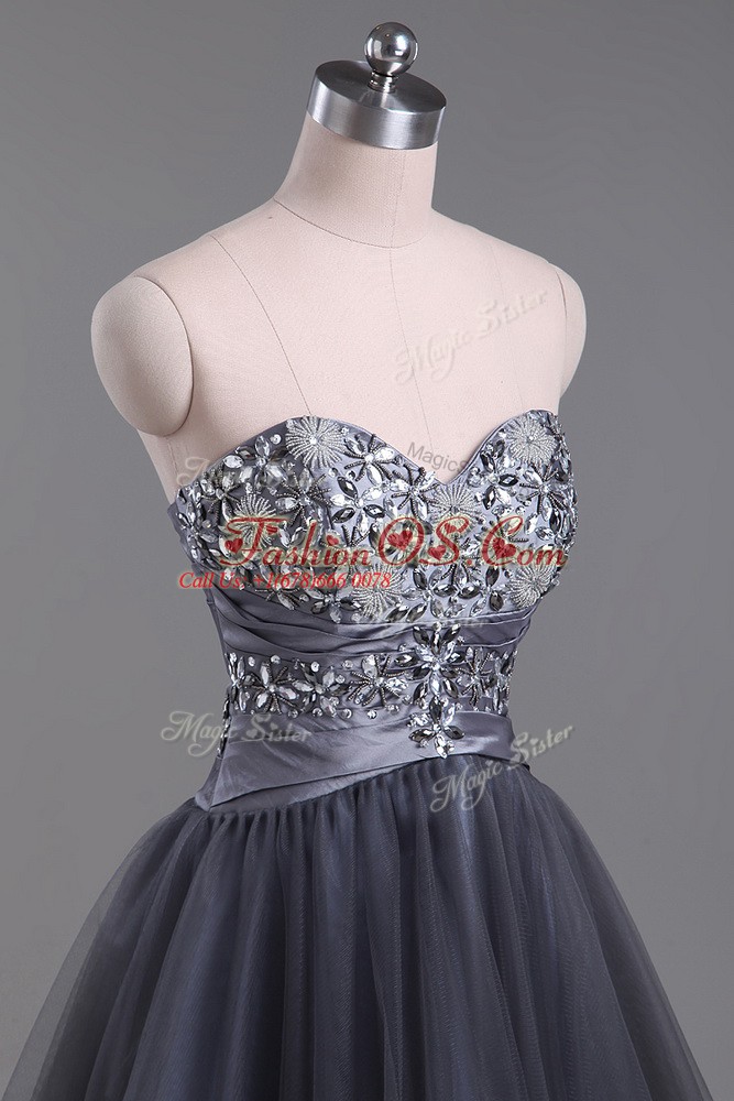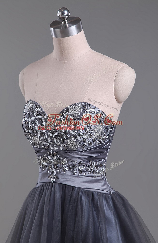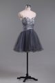 Customized Grey Zipper Sweetheart Beading Cocktail Dress Tulle Sleeveless
