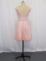 Customized Lace Scoop Sleeveless Zipper Beading and Lace Dress for Prom in Pink