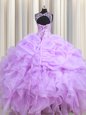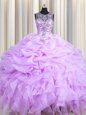 Customized Lavender Sweet 16 Quinceanera Dress Military Ball and Sweet 16 and Quinceanera and For with Beading and Ruffles and Pick Ups Scoop Sleeveless Lace Up