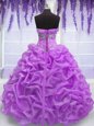 Customized Lilac Ball Gowns Beading Quinceanera Gown Lace Up Organza Sleeveless Floor Length