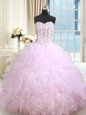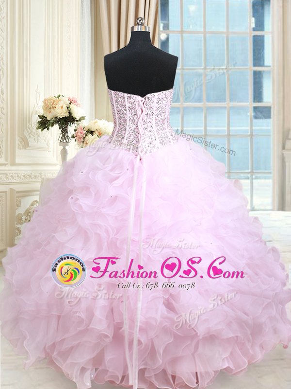 Customized Lilac Ball Gowns Sweetheart Sleeveless Organza Floor Length Lace Up Beading and Ruffles and Ruffled Layers 15 Quinceanera Dress