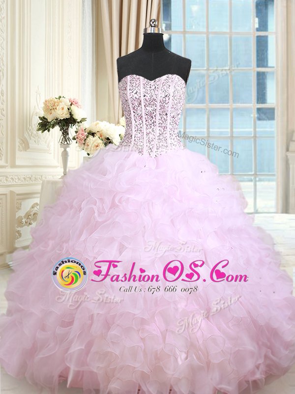 Home >  Quinceanera Dresses >  In Stock Quinceanera Dresses > Customized Lilac Ball Gowns Sweetheart Sleeveless Organza Floor Length Lace Up Beading and Ruffles and Ruffled Layers 15 Quinceanera Dress