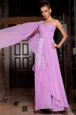 Home >  Evening Dresses > Customized Lilac Column/Sheath Chiffon Square Half Sleeves Beading and Ruching Ankle Length Side Zipper Formal Dresses