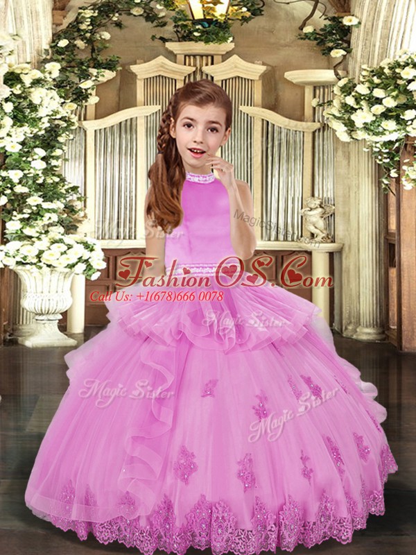 Home >  Special Occasion Dresses >  Beautiful Kids Pageant Dresses > Customized Lilac Sleeveless Tulle Backless Pageant Gowns for Party and Sweet 16 and Wedding Party