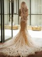 Customized Mermaid Champagne Tulle Lace Up Sweetheart Sleeveless With Train Wedding Gown Court Train Appliques and Hand Made Flower
