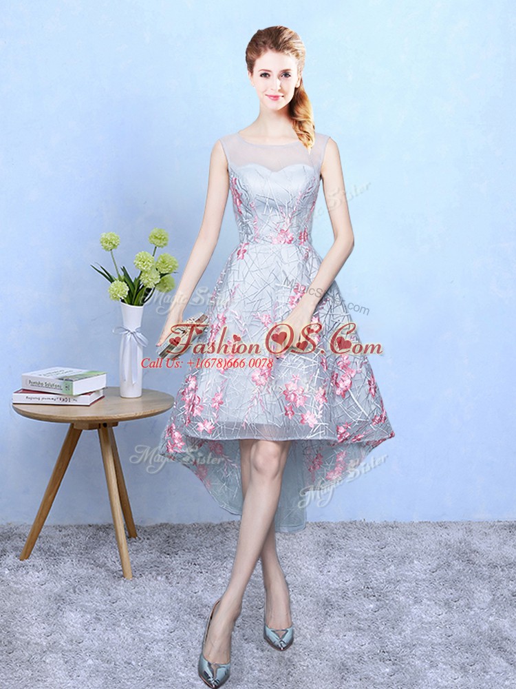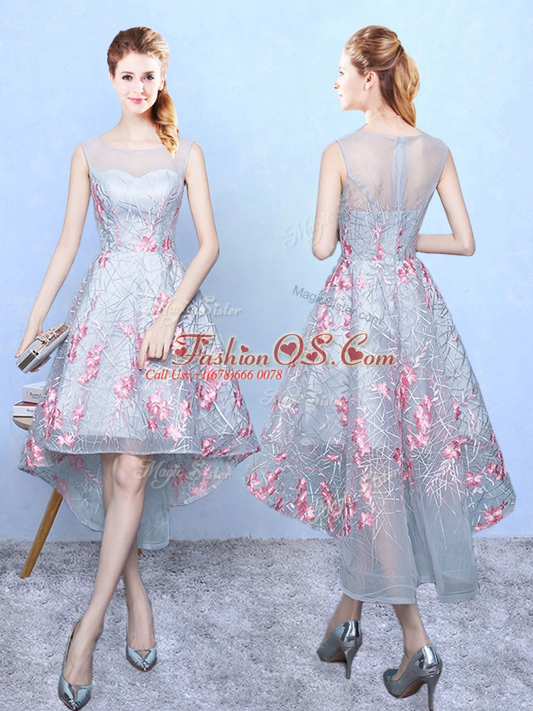 Customized Multi-color A-line Square Sleeveless Organza High Low Zipper Embroidery Dama Dress for Quinceanera
