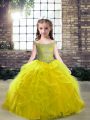 Home >  Special Occasion Dresses >  Beautiful Kids Pageant Dresses > Customized Olive Green Off The Shoulder Neckline Beading and Ruffles Glitz Pageant Dress Sleeveless Lace Up