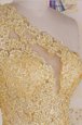 Customized One Shoulder High Low Side Zipper Mother Of The Bride Dress Yellow and In for Prom and Party with Appliques