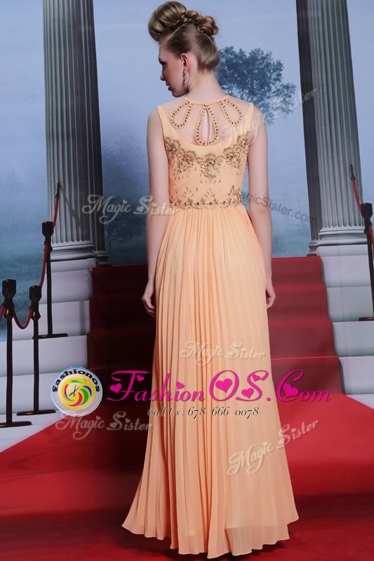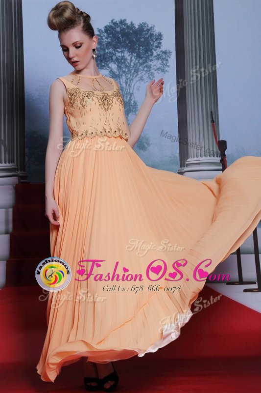 Customized Orange Homecoming Dress Prom and Party and For with Beading and Appliques High-neck Sleeveless Side Zipper