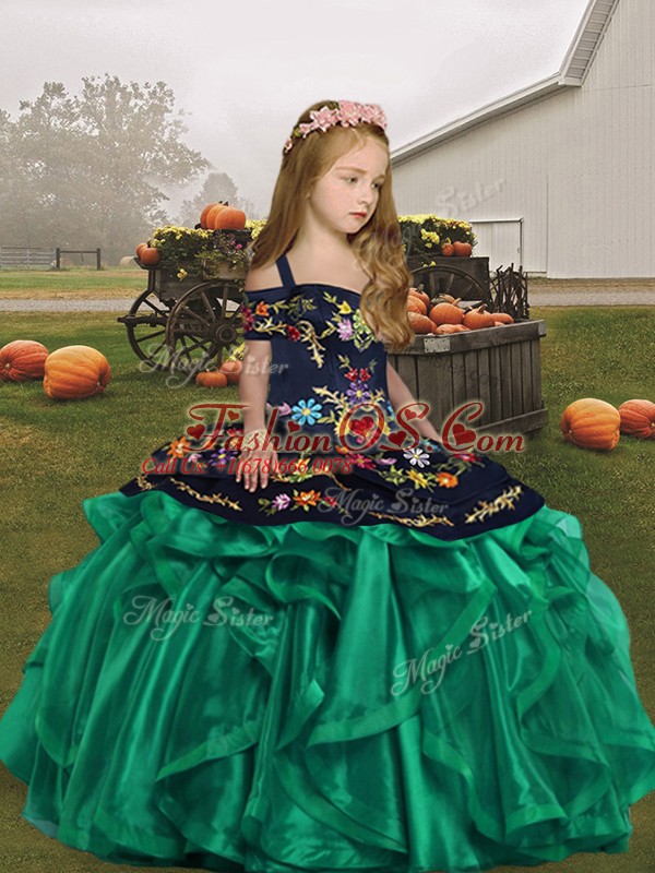 Customized Organza Straps Sleeveless Lace Up Embroidery Glitz Pageant Dress in Turquoise
