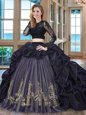 Customized Pick Ups With Train Purple Vestidos de Quinceanera Scoop Long Sleeves Brush Train Backless