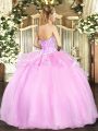 Customized Pink Lace Up Sweetheart Beading 15 Quinceanera Dress Organza Sleeveless