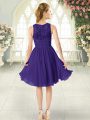 Customized Purple Empire Lace Prom Party Dress Zipper Chiffon Sleeveless Knee Length