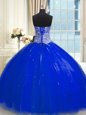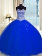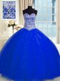Customized Royal Blue Sweetheart Backless Beading and Sequins Quinceanera Gowns Sleeveless