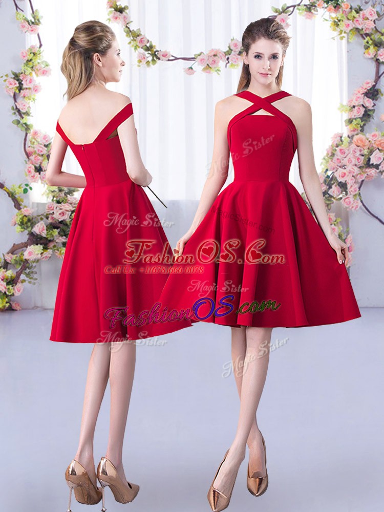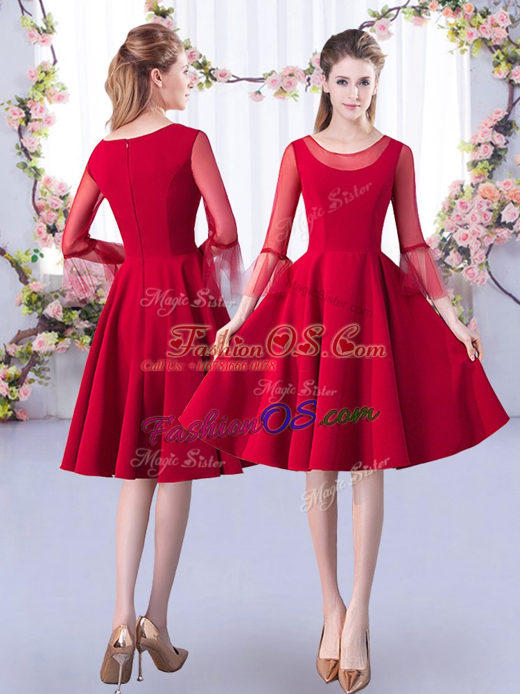 Customized Ruching Quinceanera Court Dresses Red Zipper 3 4 Length Sleeve Knee Length