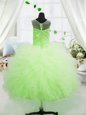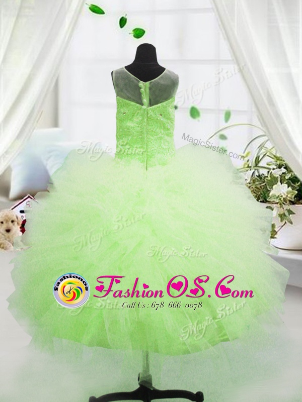 Customized Scoop Beading and Appliques Little Girl Pageant Dress Yellow Green Zipper Sleeveless Floor Length
