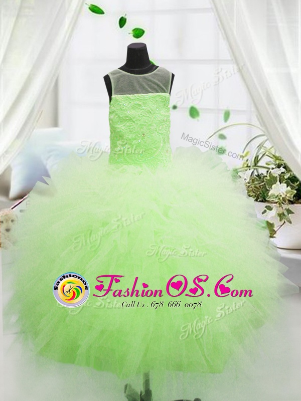 Home >  Special Occasion Dresses >  Mini Quinceanera Dresses > Customized Scoop Beading and Appliques Little Girl Pageant Dress Yellow Green Zipper Sleeveless Floor Length