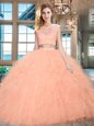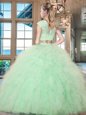 Customized Scoop Cap Sleeves Beading and Ruffles Zipper 15 Quinceanera Dress