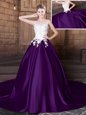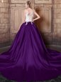 Customized Scoop Elastic Woven Satin Sleeveless With Train Vestidos de Quinceanera Court Train and Lace and Appliques