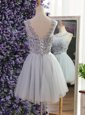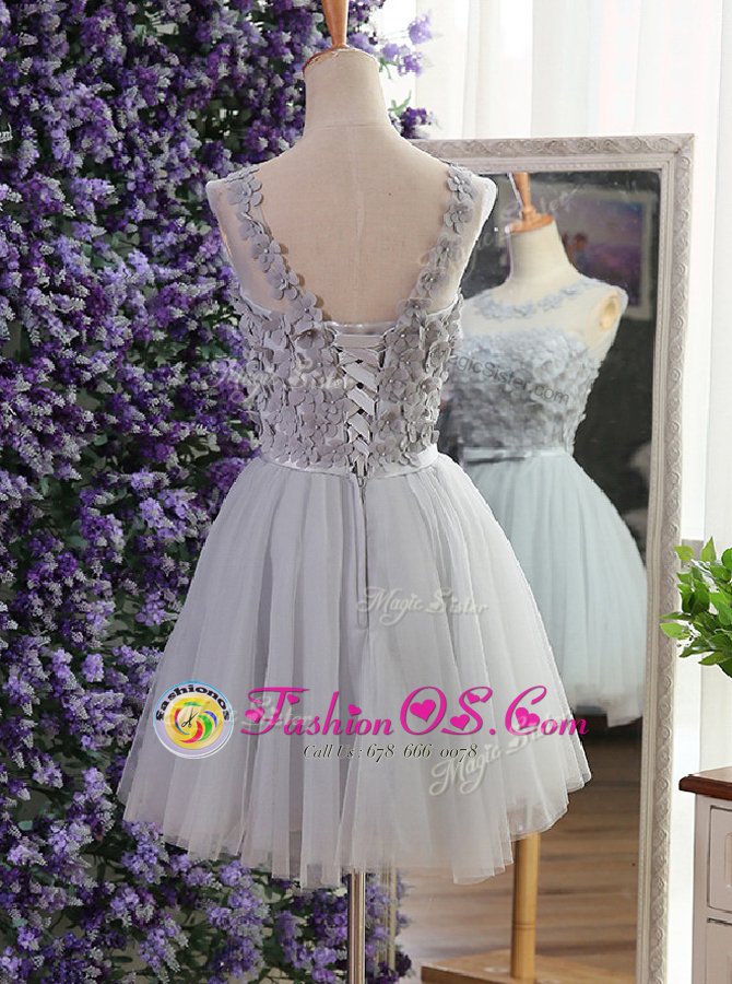 Customized Scoop Mini Length Lace Up Cocktail Dresses Grey and In for Prom with Appliques