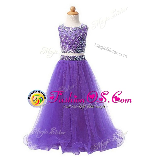Customized Scoop Sleeveless Organza Flower Girl Dress Beading Zipper