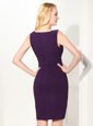 Customized Scoop Sleeveless Silk Like Satin Mini Length Zipper Homecoming Dress in Purple for with Ruffles