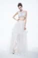 Customized Scoop Sleeveless Zipper Evening Gowns White Chiffon